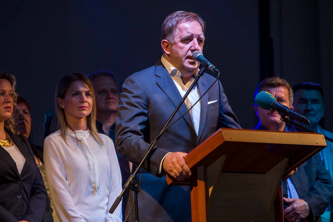 Dočekan euforčnim pljeskom nazočnih govorio je kandidat za župana dr. Darko Milinović.