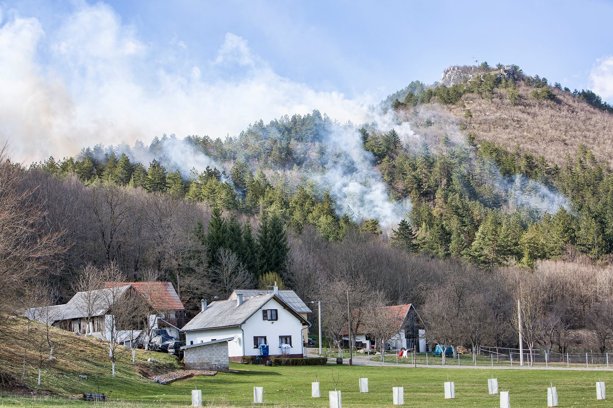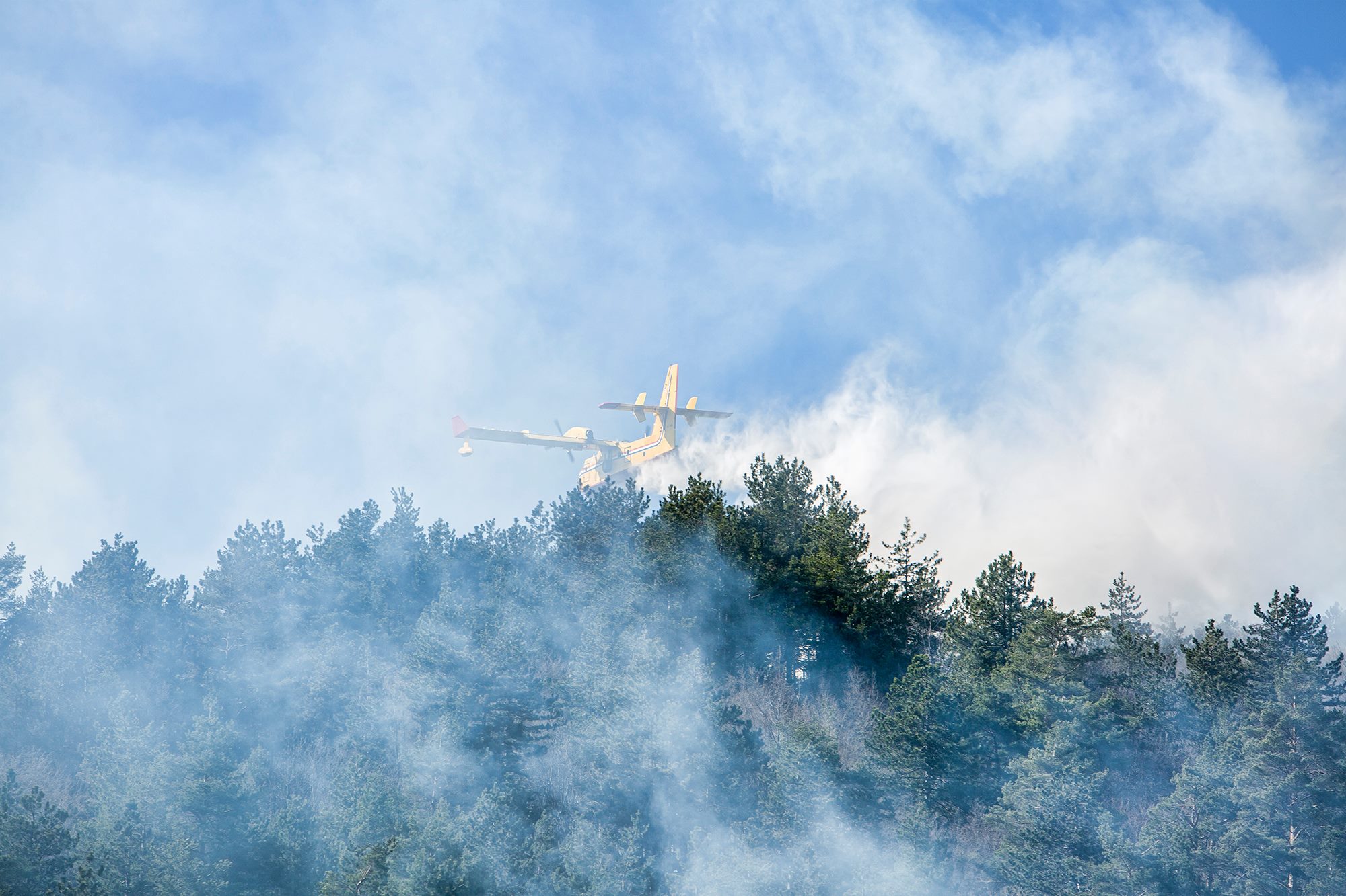 Požar gori na području koje je naseljeno pa su nadležne službe u pomoć pozvale kanadere. Na terenu su trenutno tri kanadera i dvadesetak vatrogasaca na terenu koji je nepristupačan vatrogasnim vozilima.