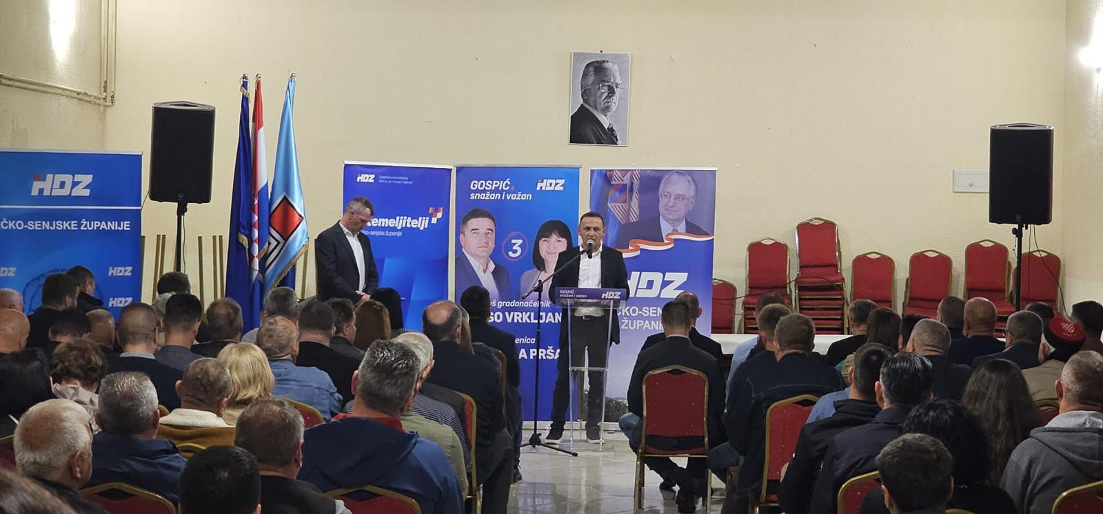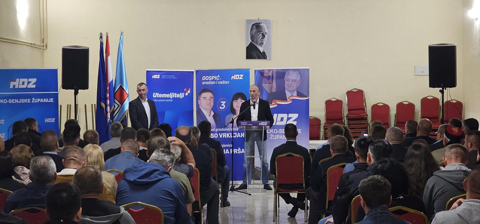 Živković se u obraćanju zahvalio svim braniteljima koji su u prvim danima Domovinskog rata sudjelovali u obrani Gospića te ratnim zapovjednicima obrane ovog dijela grada odnosno zapovjednicima vodova 25. satnije ZNG-a, Paji Brkljačiću i Ivici Živkoviću – Živi, dok je posebne riječi zahvale uputio je ličko-senjskom županu Ernestu Petryju kojemu je jedan od prvih poteza bio pokretanje projekta izgradnje Memorijalnog centra Domovinskog rata u Gospiću. Živković je ujedno zahvalio Petryju i na svim drugim brojnim projektima koji se aktivno provode na području grada Gospića i cijele Ličko-senjske županije. Nadalje je istaknuo kako su kandidati HDZ-a, Joso Vrkljan i Kristina Prša najbolji mogući izbor koji će ovome gradu osigurati kontinuirani napredak i razvoj.