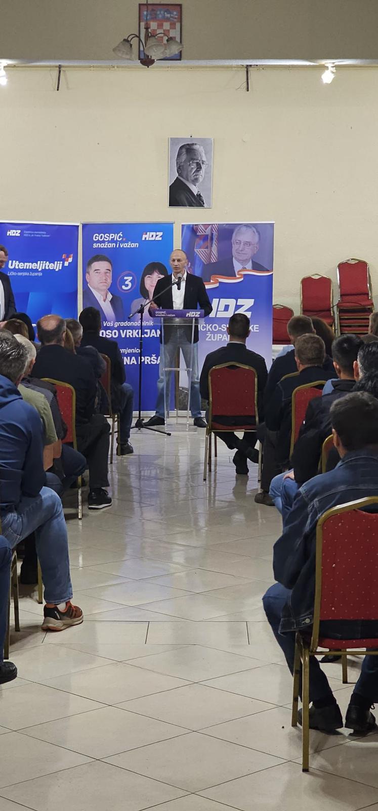 Uoči nadolazećih europarlamentarnih izbora te prijevremenih izbora za gradonačelnika Grada Gospića, sinoć je u Društvenom domu u Žabici održan predizborni skup HDZ-a, na kojemu su nazočili brojni mještani prigradskih naselja Žabica, Lički Novi, Kaniža i Podoštra.