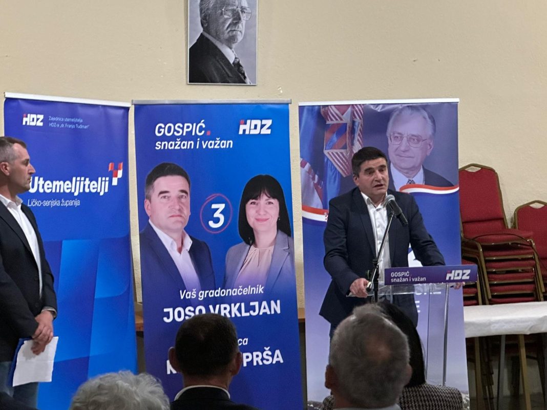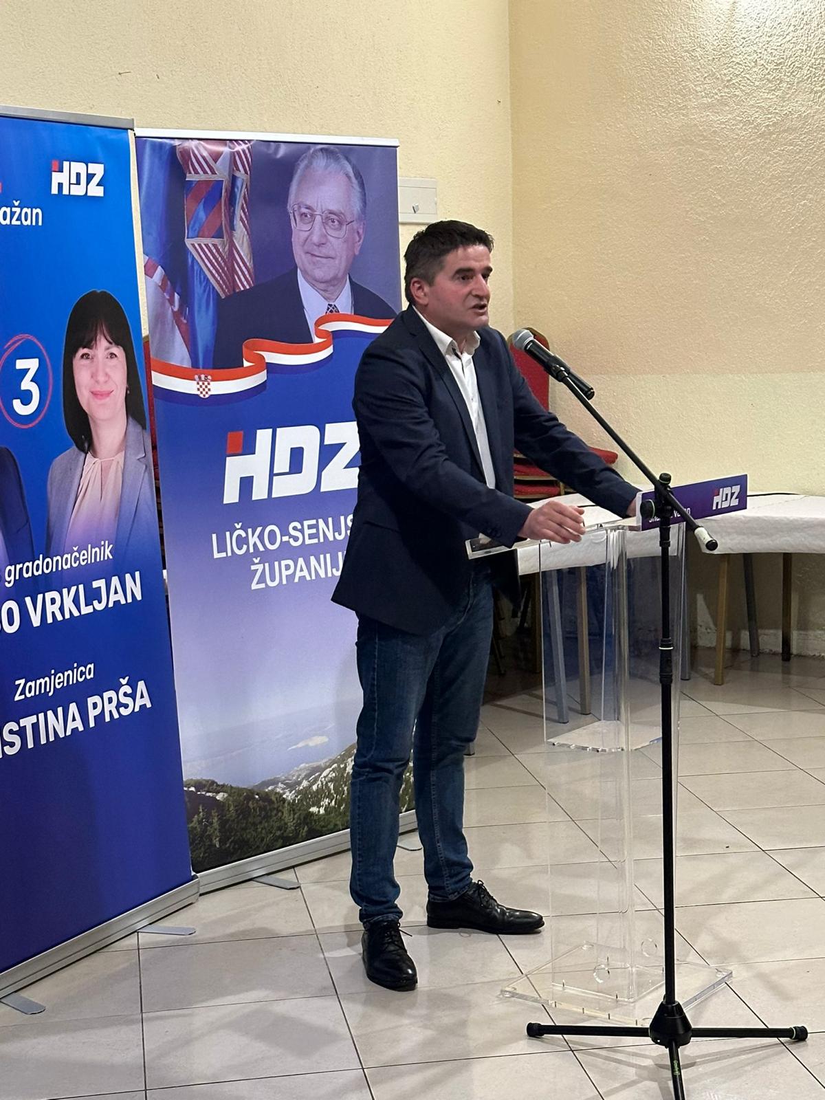 – “HDZ-ovi kandidati će, kako ja to volim reći, “potaracati” sve protukandidate u Gospiću. U nadolazećim političkim utakmicama očekujemo rezultat 4:0, a to znači da uz osvojenu pobjedu na parlamentarnim izborima, očekujemo pobjede na lokalnim izborima za gradonačelnika Grada Gospića, kao i na europarlamentarnim izborima, a za kraj ove super izborne godine kruna pobjede bit će trenutak kada skinemo “Crvenu rijeku” s Pantovčaka i dobijemo još jednog hrvatskog predsjednika, kako bi napokon na Pantovčaku imali sljednika pokojnog predsjednika dr. Franje Tuđmana.“