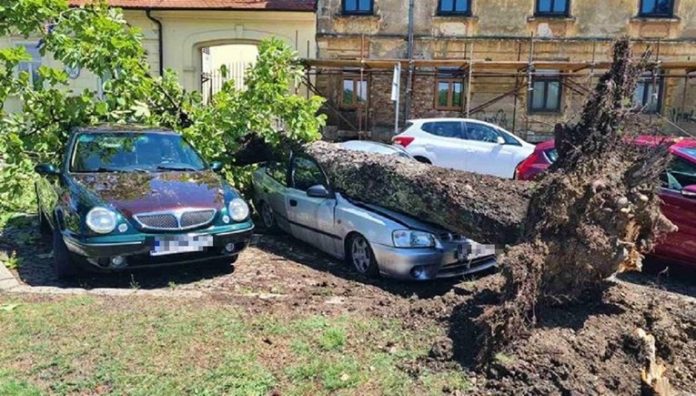 OLUJNO nevrijeme danas prijepodne pogodilo je Sisačko-moslavačku, Požeško-slavonsku, Virovitičko-podravsku i Zagrebačku županiju, a za sobom je ostavilo materijalnu štetu na objektima, srušena stabla i poteškoće u prometu i opskrbi strujom.
