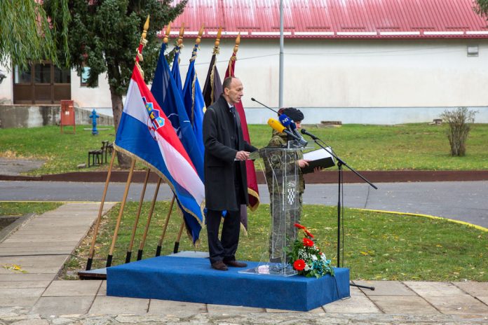 Posebna mi je čast i zadovoljstvo pozdraviti vas danas u Gospiću, u ime predsjednika Hrvatskog sabora gdina. Gordana Jandrokovića, kao i u svoje osobno ime, ovdje, u vojarni “9. gardijske brigade Vukovi”, koja je tijekom cijelog Domovinskog rata nosila ime “Eugen Kvaternik”.