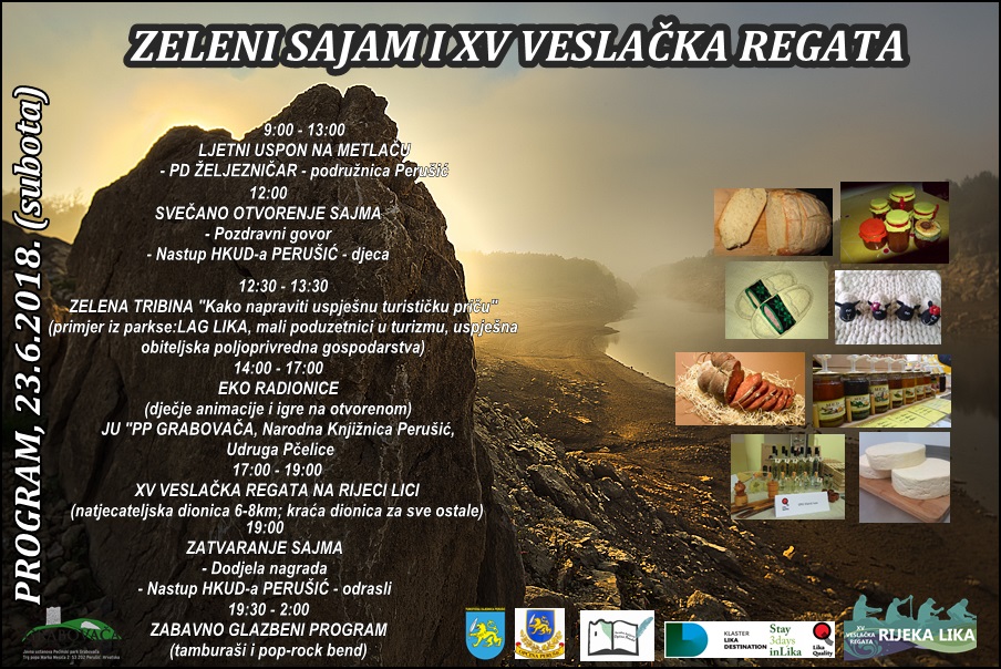 1. Zeleni sajam u na rijeci Lici (lokacija „Ćojluk“) održat će se ove subote s početkom u 12 sati. Na Sajmu će sudjelovati više od 50 izlagača iz redova obiteljskih poljoprivrednih gospodarstava, smještajnih kapaciteta, obrtnika u turizmu i javnih ustanova koje upravljaju zaštićenim područjima (Lika destinacija). Uz Sajam nešto kasnije, na istoj lokaciji održat će se jubilarna, 15. po redu Veslačka regata.