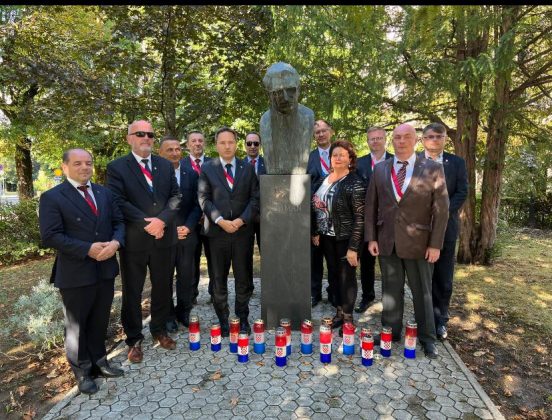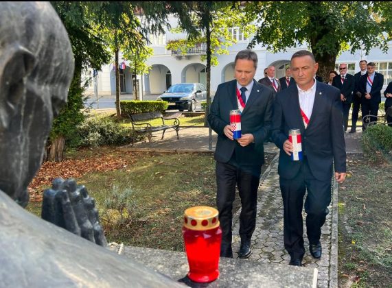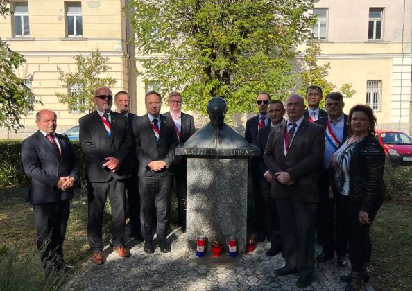 Nakon završetka obilježavanja Dana hrvatskih mučenika u Udbini, Veliki meštar Mislav Grgić, Zmaj Strossmayerski i župan Ernest Petry, Zmaj od Vile Velebita, susreli su se s domaćinom gospićko-senjskim biskupom mons. Zdenkom Križićem, a potom je cjelokupno izaslanstvo Družbe posjetilo Gospić gdje su članovi Družbe zapalili svijeće i odali počast na tri važna spomen-obilježja: uz Spomen žrtvama Domovinskog rata, uz kip blaženom Alojziju kardinalu Stepincu, Zmaju od Bakačeve Kule (kip je postavila Družba) i uz kip dr. Franji Tuđmanu, Zmaju od Hrvatske (također je i ovaj kip postavila Družba). Sva tri spomen-obilježja nalaze se na Trgu Alojzija Stepinca u samom centru Gospića, neposredno uz Katedralu Navještenja Blažene Djevice Marije.