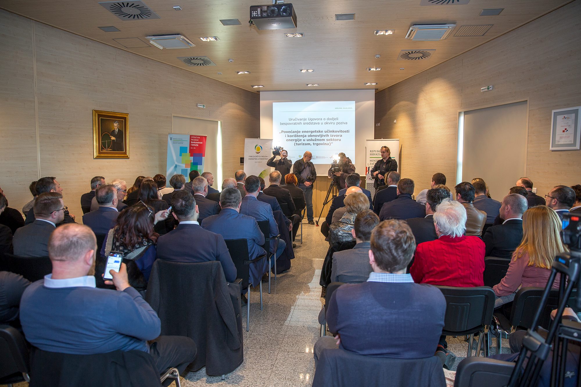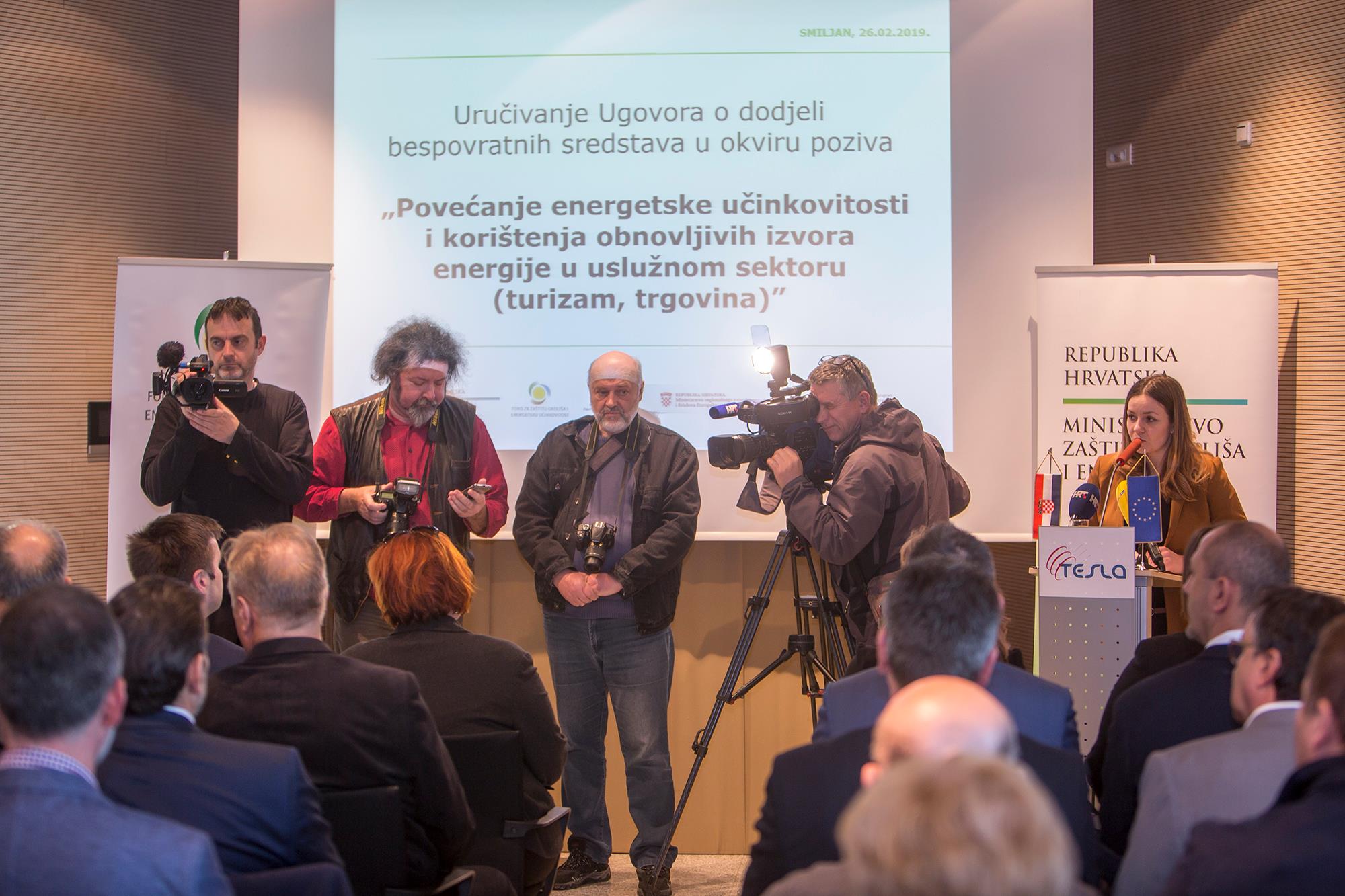 Vezano uz Poziv „Povećanje energetske učinkovitosti i korištenja obnovljivih izvora energije u uslužnom sektoru turizam i trgovina“ Ministarstva zaštite okoliša i energetike danas je u Memorijalnom centru Nikole Tesle u Smiljanu održana svečana dodjela Ugovora. Ugovore su malim, srednjim i velikim poduzetnicima i obrtnicima uručili ministar dr. sc. Tomislav Ćorić i direktor Fonda za zaštitu okoliša i energetsku učinkovitost Dubravko Ponoš. Govoreći o značenju Nikole Tesle ministar Ćorić je u uvodu naglasio kako nije slučajnost da je kao najpogodnije mjesto za ovu svečanost izabran Memorijalni centar Nikole Tesle.