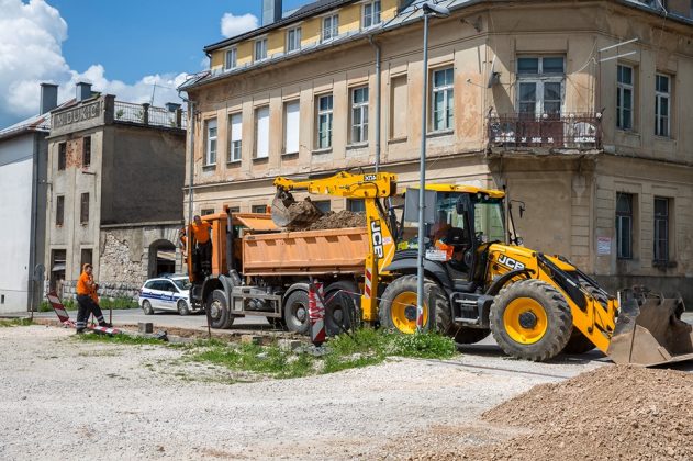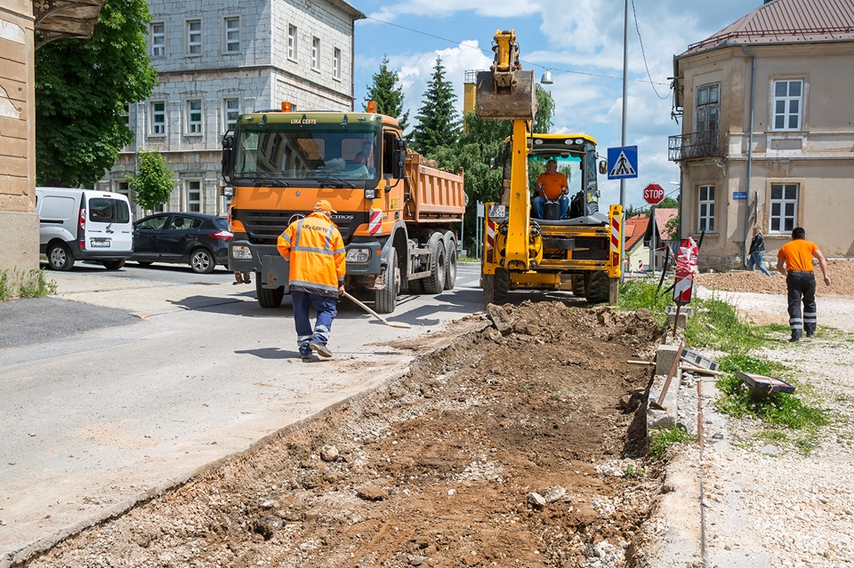 Djelatnici i tehnika poduzeća „Lika-ceste“ neprestano su na terenu. Oko našeg objektiva zateklo ih je danas na potezu od Policijske postaje prema Okružnom zatvoru. Ovaj projekt izrade novog nogostupa zajednički financiraju MUP RH i Grad Gospić