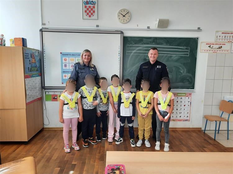 U cilju što sigurnijeg dolaska do škole, te kako bi bili vidljivi i sigurni pri kretanju prometnicama, djeci su podijeljeni promotivni materijali (reflektirajući prsluci i edukativne bojanke).