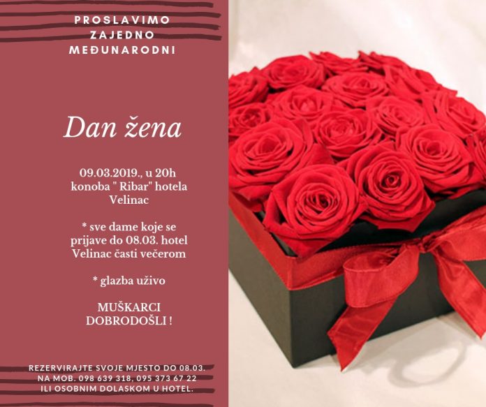 Svake godine u Karlobagu se nezaobilazno slavi 8. ožujka, međunarodni Dan žena. Ove godine će se ovim povodom zabava održati u subotu, 9. ožujka kada se u konobi „Ribar“ u hotelu „Velinac“ priređuje zabava. Sve dame koje svoje rezervacije izvrše do 8. ožujka hotel „Velinac“ časti s besplatnom večerom. Posjetitelje očekuje niz delicija i zabava uz glazbu u živo. Organizator ove priredbe je Turistička zajednica Općine Karlobag.