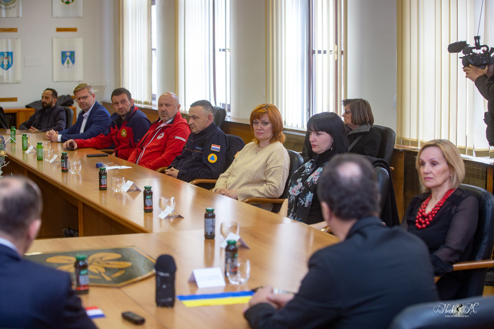 Veleposlanik Ukrajine u Republici Hrvatskoj  Vasyl Kyrylycho saslušao je sve članove Stožera civilne zaštite te u uvodnim riječima citirao Marka Marulića i potrebu da blagoslov bude na svakom čovjeku dobre voje.