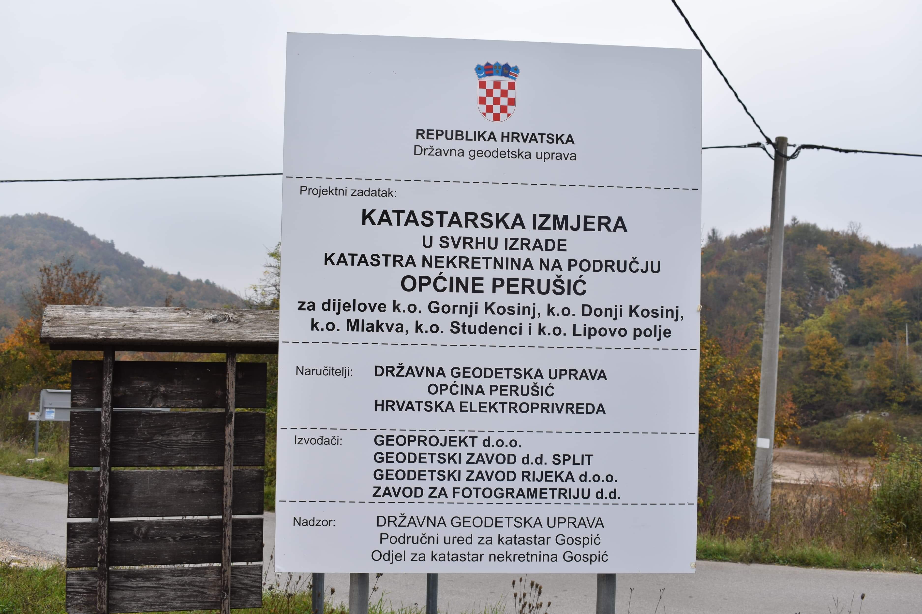 Tablu s podacima o početku izmjera otkrili su zamjenik Državne geodetske uprave Anton Vidaković i Mario Kaić iz Geoprojekta Zagreb, u nazočnosti predstavnika HEP-a, Područnog ureda za katastar Gospić, Geodetskog zavoda Rijeka, Geodetskog zavoda Split, Zavoda za fotogrametriju Zagreb. U ime Općine Perušić nazočne je pozdravio zamjenik načelnika Mihael Kurteš koji je izrazio nadu kako će se na ovaj način urediti stanje zemljišnih knjiga u ovim katastarskim općina na području Kosinja. Jučer je u OŠ„Anž Frankopan“ u Kosinju organiziran skup sa mještanima Kosinja kako bi ih se informiralo o započetim radovima.