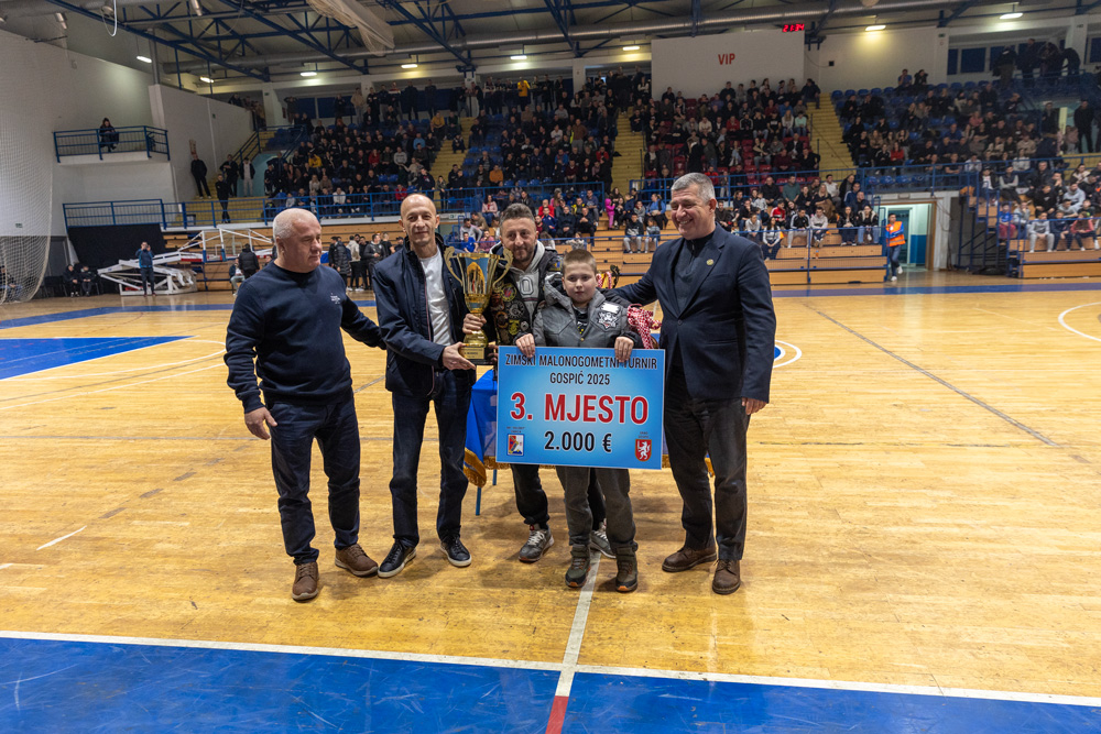 Zimski malonogometni turnir u Gospiću, završen je večeras velikim finalom pred prepunom Gradskom sportskom dvoranom. Dodatni značaj večerašnjem turniru svojom nazičnošću dao je i predsjednik HNS-a Marijan Kustić u pratnji župana ličko-senjskog Ernesta Petryja.