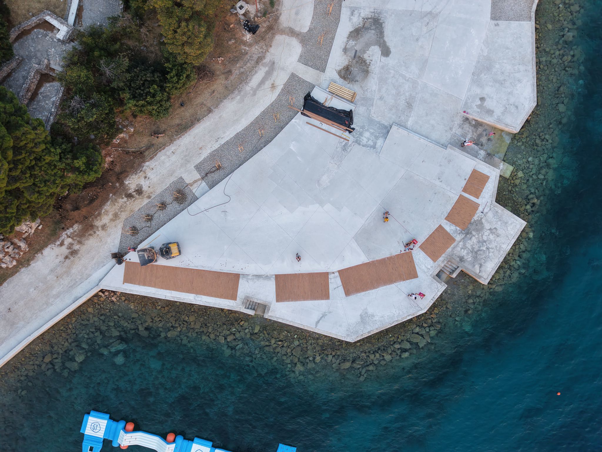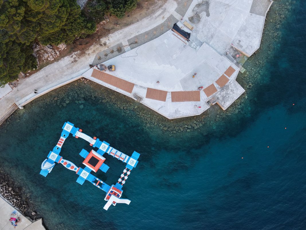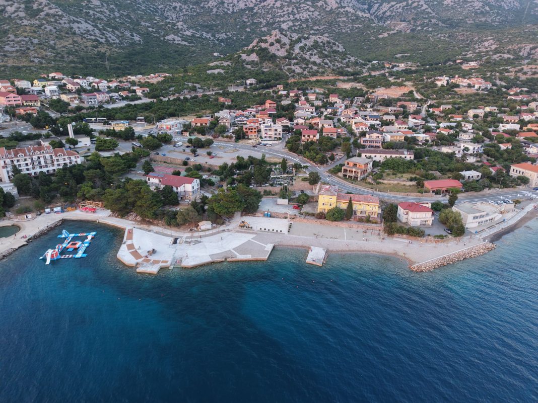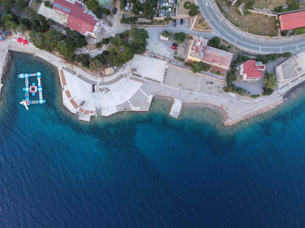 U Karlobagu su završeni radovi u prvoj fazi sanacije hotelske plaže, jedne od ključnih turističkih točaka ovog priobalnog mjesta. Fotografije iz drona snimljene ovih dana svjedoče o vidljivim rezultatima – betonske površine već su oblikovane, postavljene su drvene obloge, a obalni pojas dobiva čisti, moderan izgled.
