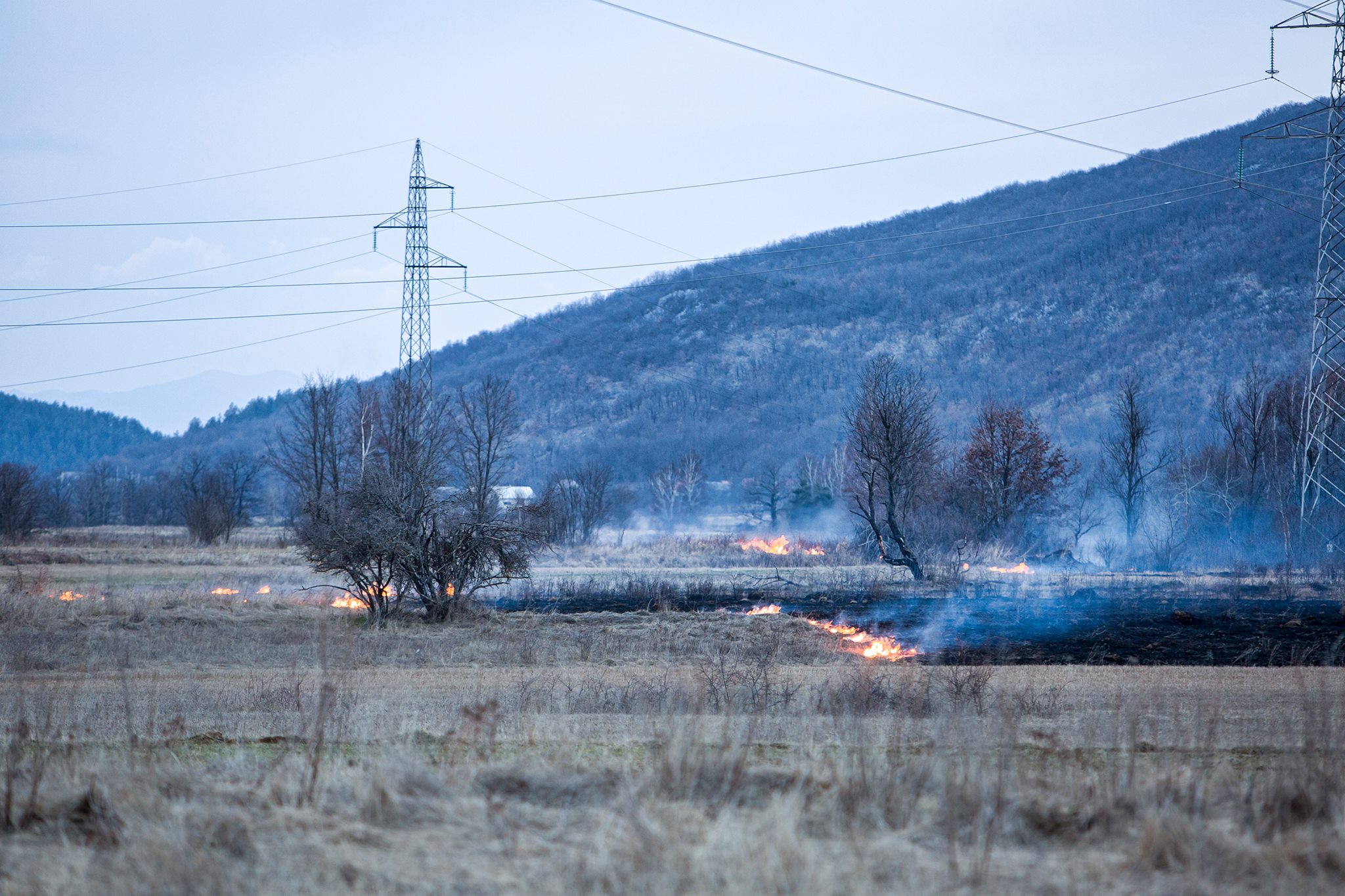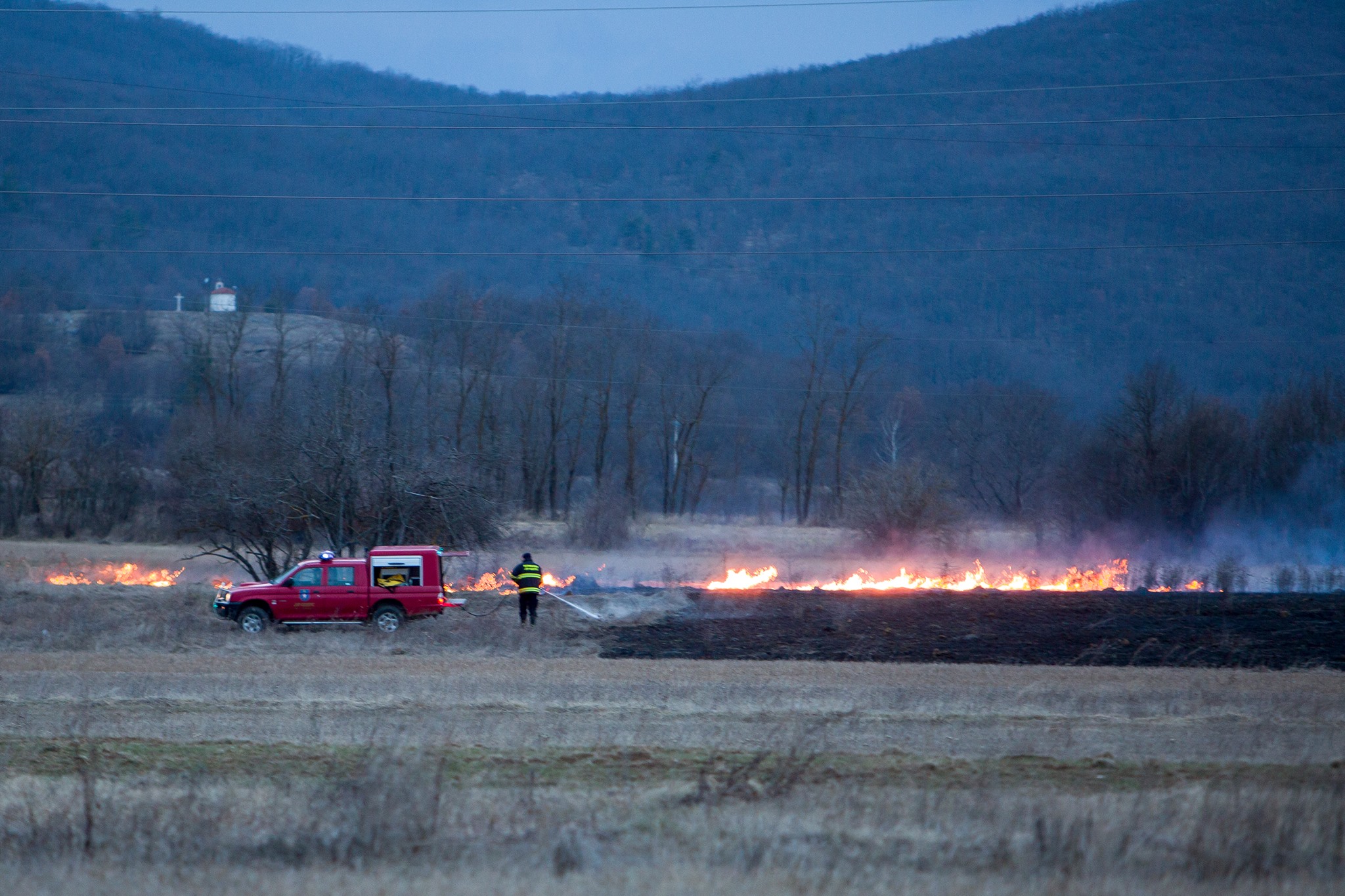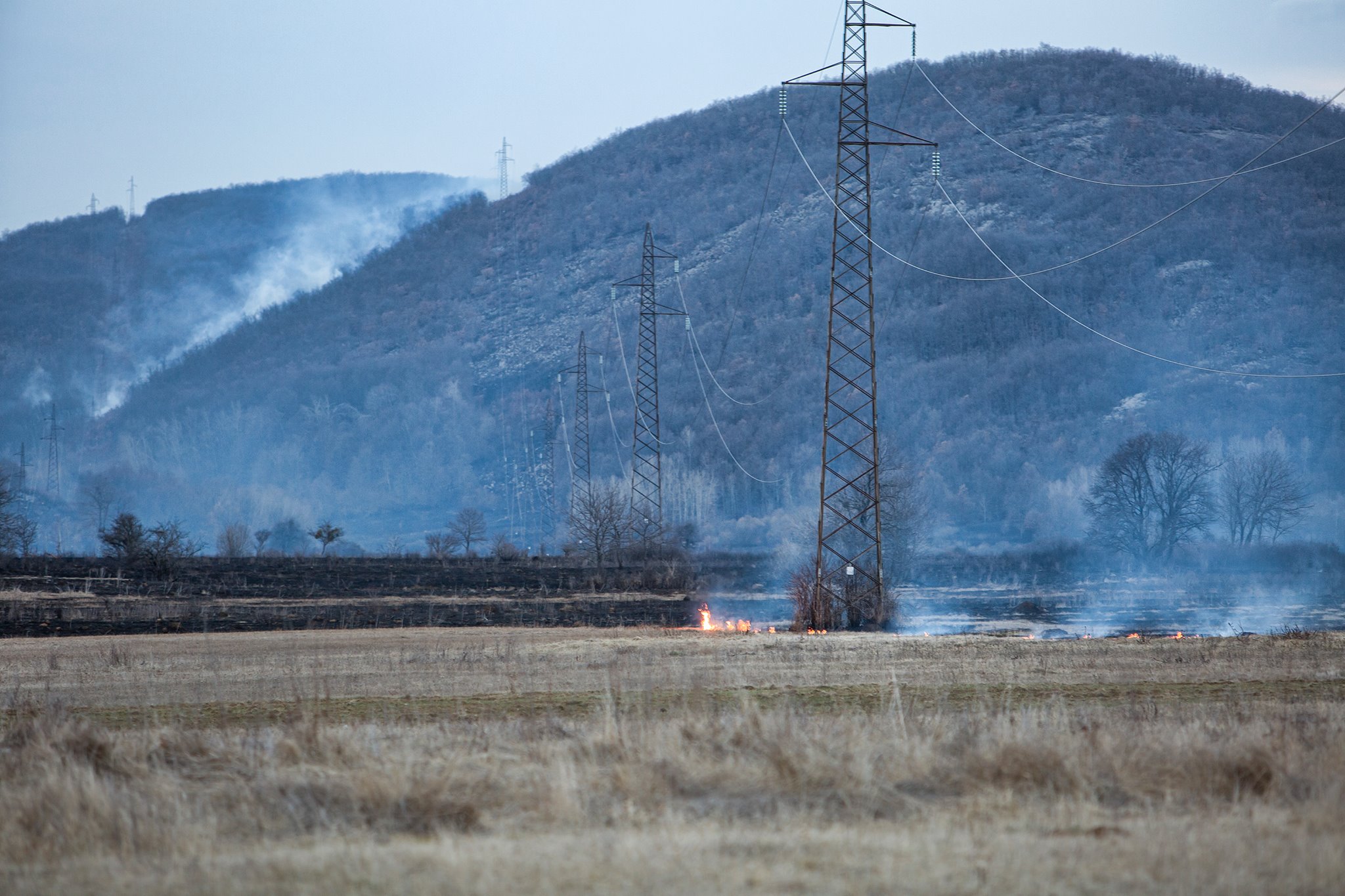 Na terenu smo zatekli vatrogasce iz Gospića koji su pokušavali neutralizirati vatru na poljima u blizini Ličkog Osika. Područje brda Lisine vatrogascima je nedostupno zbog mina, a tijekom dana čulo se desetak detonacija.