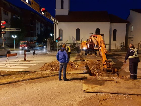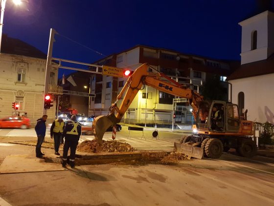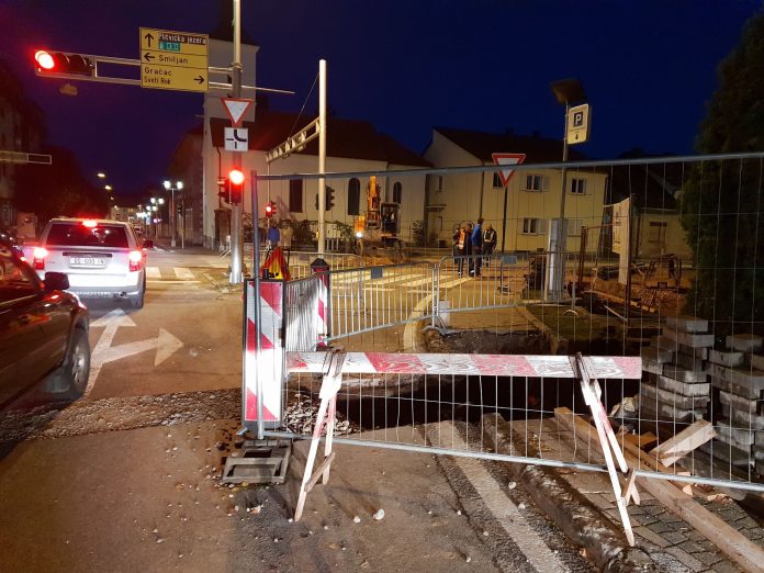 Zbog spajanja cijevi zatvorena je glavna cesta kod kapelice u Gospiću. Radovi na spajanju se odvijaju noću kada je manji promet i kada kamioni ne prometuju.
