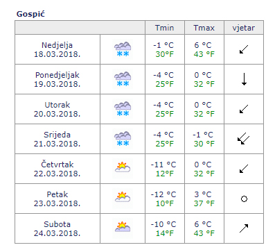 Slijedećih nekoliko dana očekujemo još malo snijega onda stižu i veliki minusi. Od četvrtka temperature će pasti ispod -10 stupnjeva zato ne spremajte toplu odjeću, zima još nije rekla svoje.
