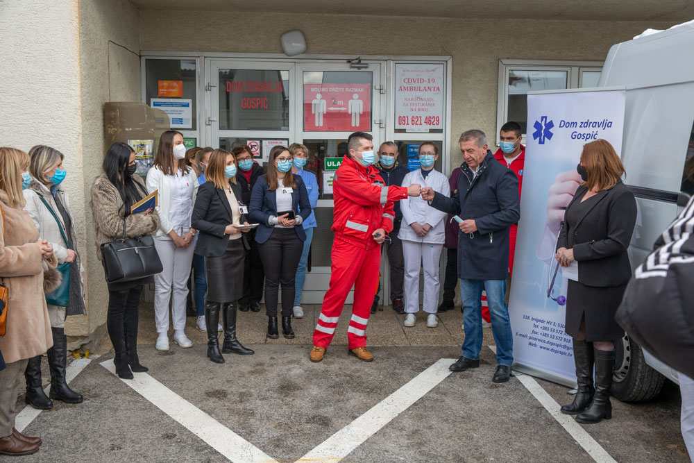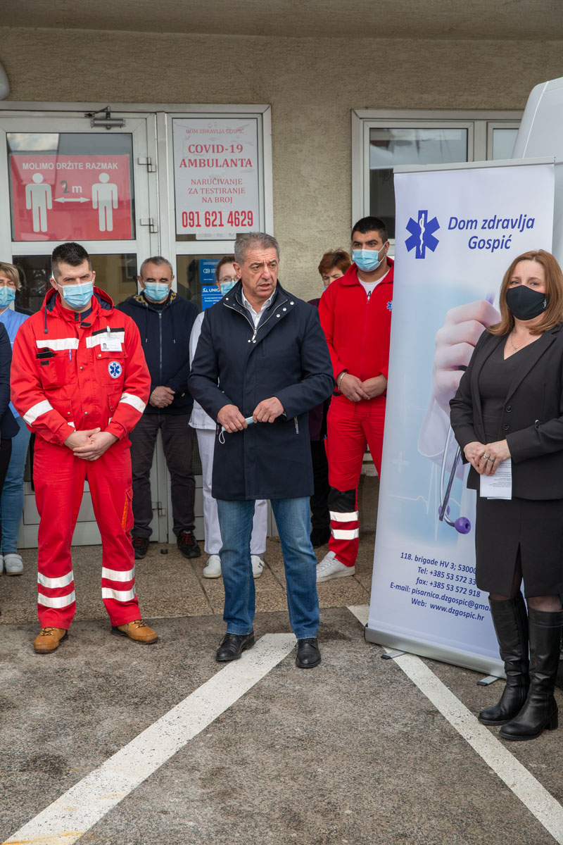 Ovakve projekte smo podupirali i do sada, a svakako ćemo ih podupirati i ubuduće. Mi smo i lani obnovili vozni park naših medicinskih ustanova iz decentraliziranih sredstava. Početak je godine  i već danas smo voznom parku Doma zdravlja Gospić dodali još jedno novo vozilo i pokretne defribilatore, što je ukupno vrijedno oko 350 tisuća kuna. Ličko senjska županije je uz ovo u svojem proračunu osigurala sredstva i za energetsku obnovu Doma zdravlja Gospić. Uz Opću bolnicu Gospić i Domove zdravlja po cijeloj županiji na ovaj se način nudi medicinska zaštita kakvu naši građani zaslužuju. Zahvaljujem se i svim ljudima medicinske struke koji su na prvoj crti obrane ove korona-krize. Sve naše građane pozivam na cijepljenje protiv korona-virusa jer je to danas postalo najubojitije oružje protiv čovječanstva, naglasio je župan dr. Darko Milinović uručujući ključeve novog sanitetskog vozila.
