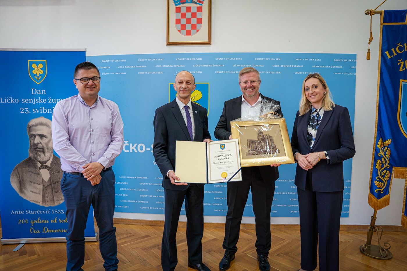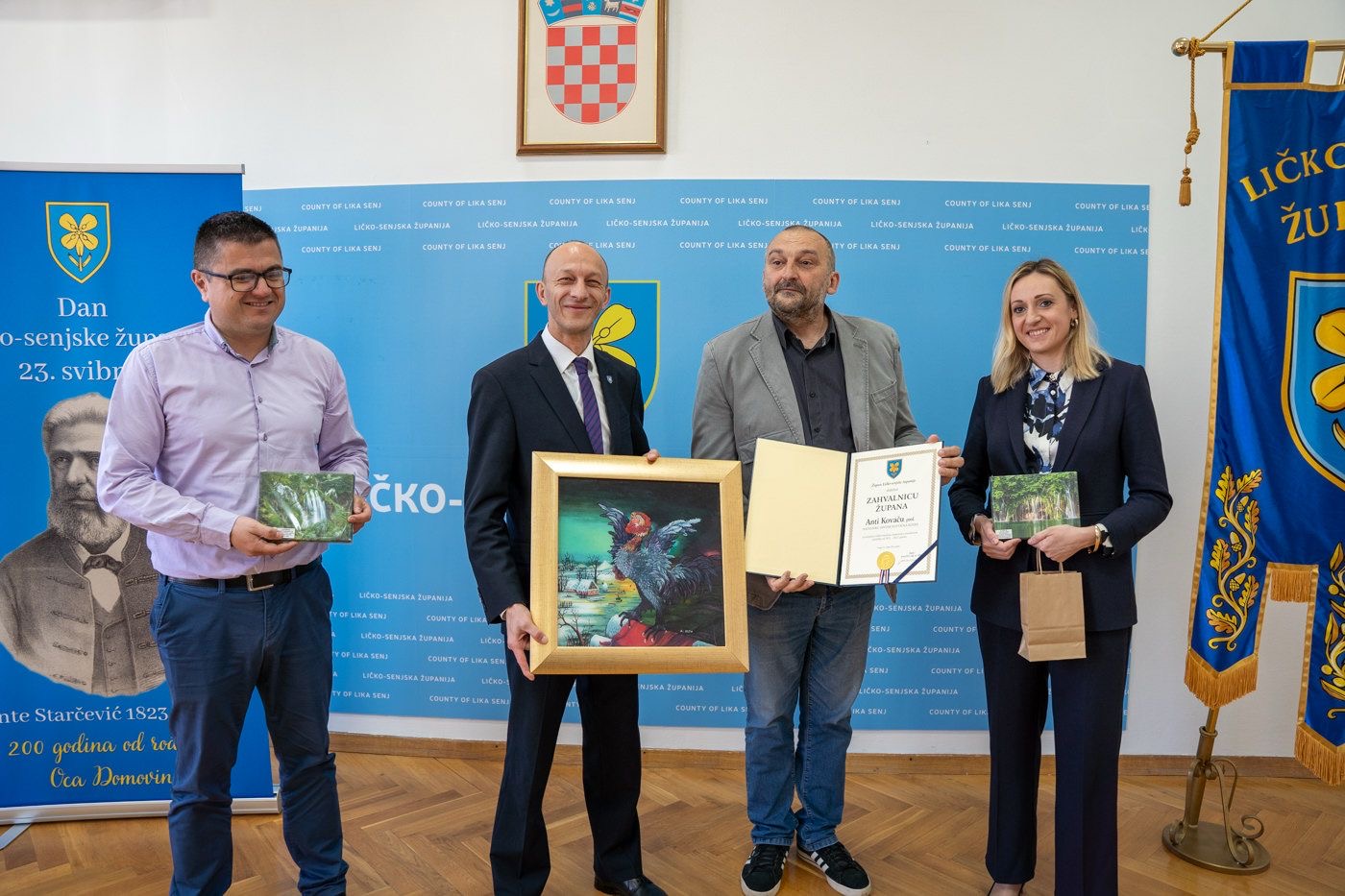U znak zahvalnosti za uspješnu suradnju i podršku, načelnici Općine Karlobag, Boris Smojver i Općine Plitvička Jezera, Ante Kovač, uručili su županu i zamjenicima prigodne poklone.
