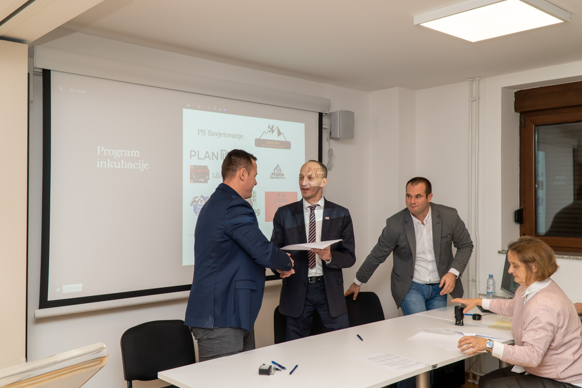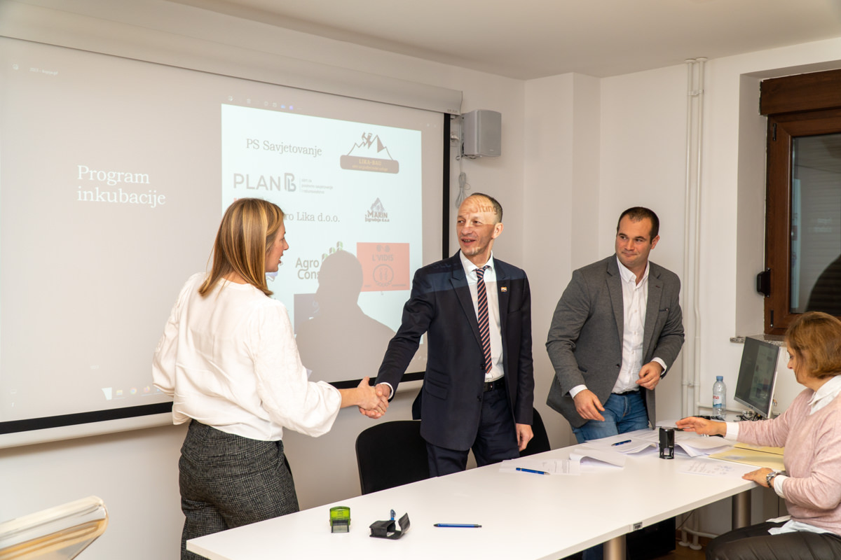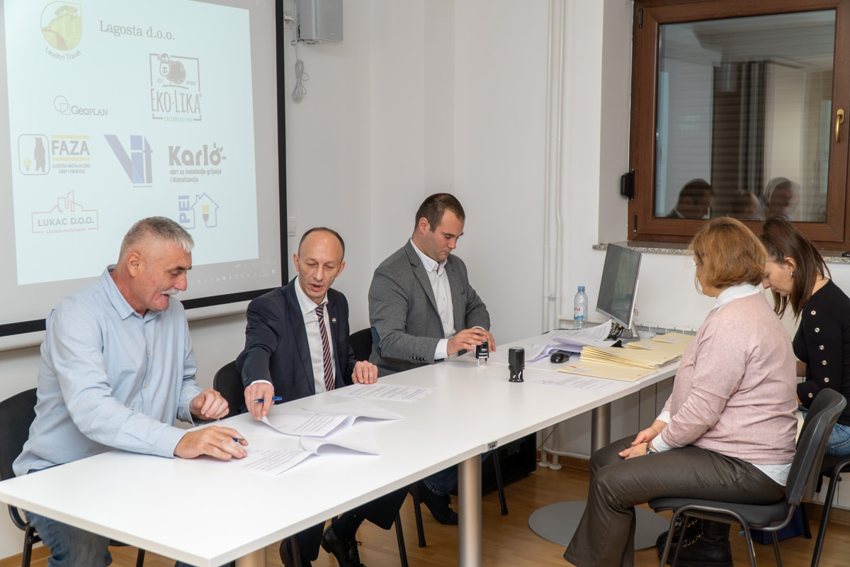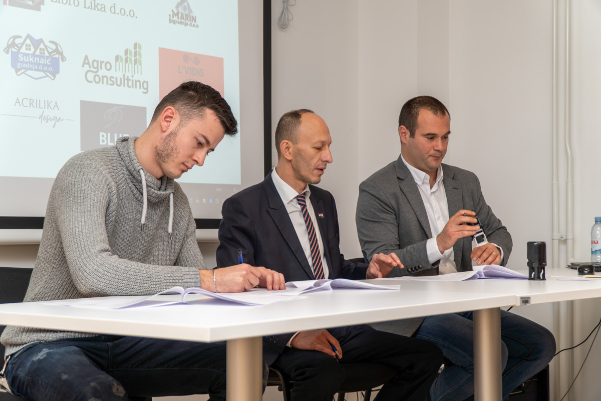 Ličko-senjska županija priredila je u dvorani Razvojnog centra Ličko-senjske županije potpisivanje Ugovora s poduzetnicima i vlasnicima OPG-a, novim korisnicima usluga Razvojnog centra.