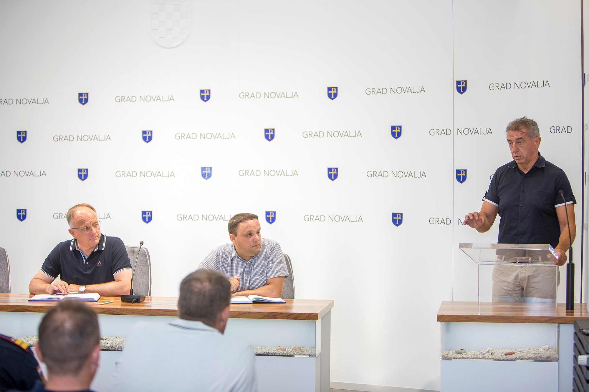Župan ličko-senjski Darko Milinović posjetio je danas Grad Novalju. U društvu gradonačelnika Ante Dabe i županijskog vatrogasnog zapovjednika Hrvoja Ostovića župan Milinović je sudjelovao na proširenoj sjednici Stožera za zaštitu i spašavanje Grada Novalje.