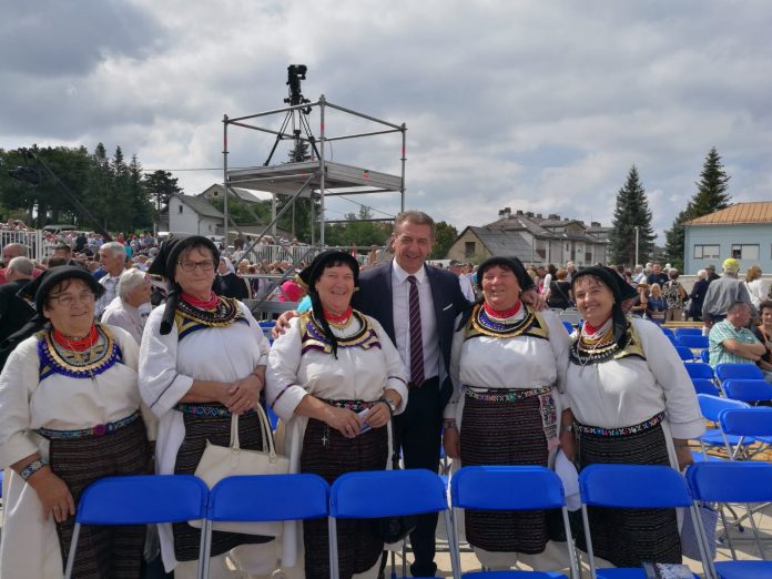 Nakon održanog euharistijskog slavlja u Udbini ličko-senjski župan dr. Darko Milinović podružio se sa vjernicima iz svih krajeva RH koji su mu prilazili u velikom broju željevši se pozdraviti sa njim.