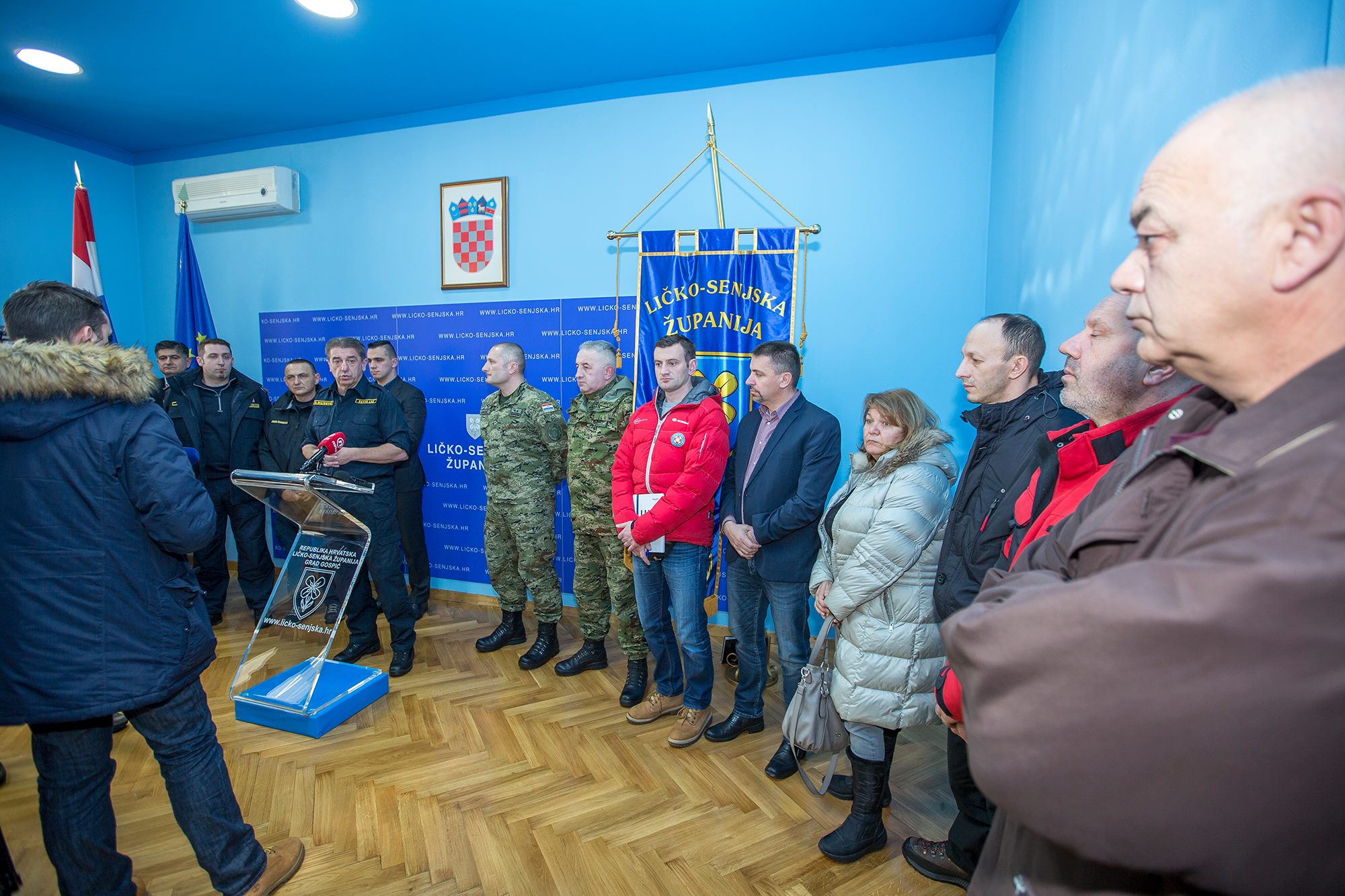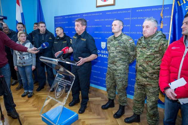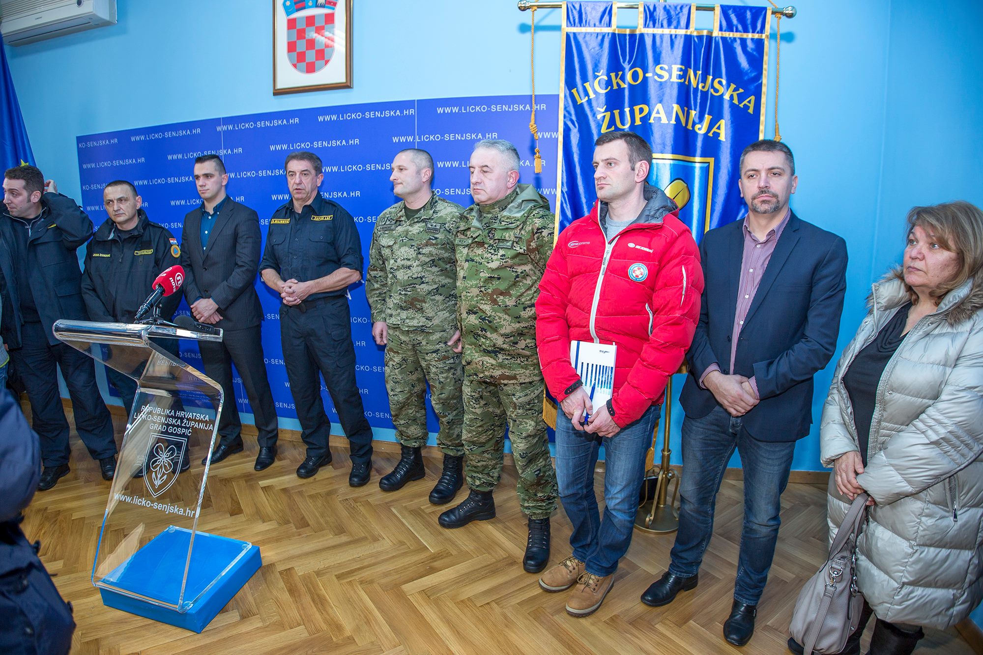 Novinarima se obratio i zapovjednik vojarne 9. GBR „Vukovi“ pukovnik Tomislav Kasumović koji je istaknuo kako su oružane snage na raspolaganju te će po potrebi biti raspoređene po Ličko-senjskoj županiji.