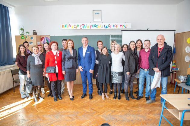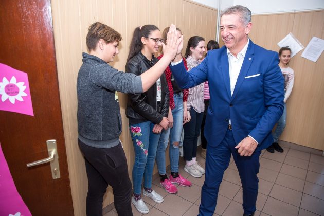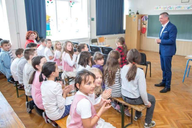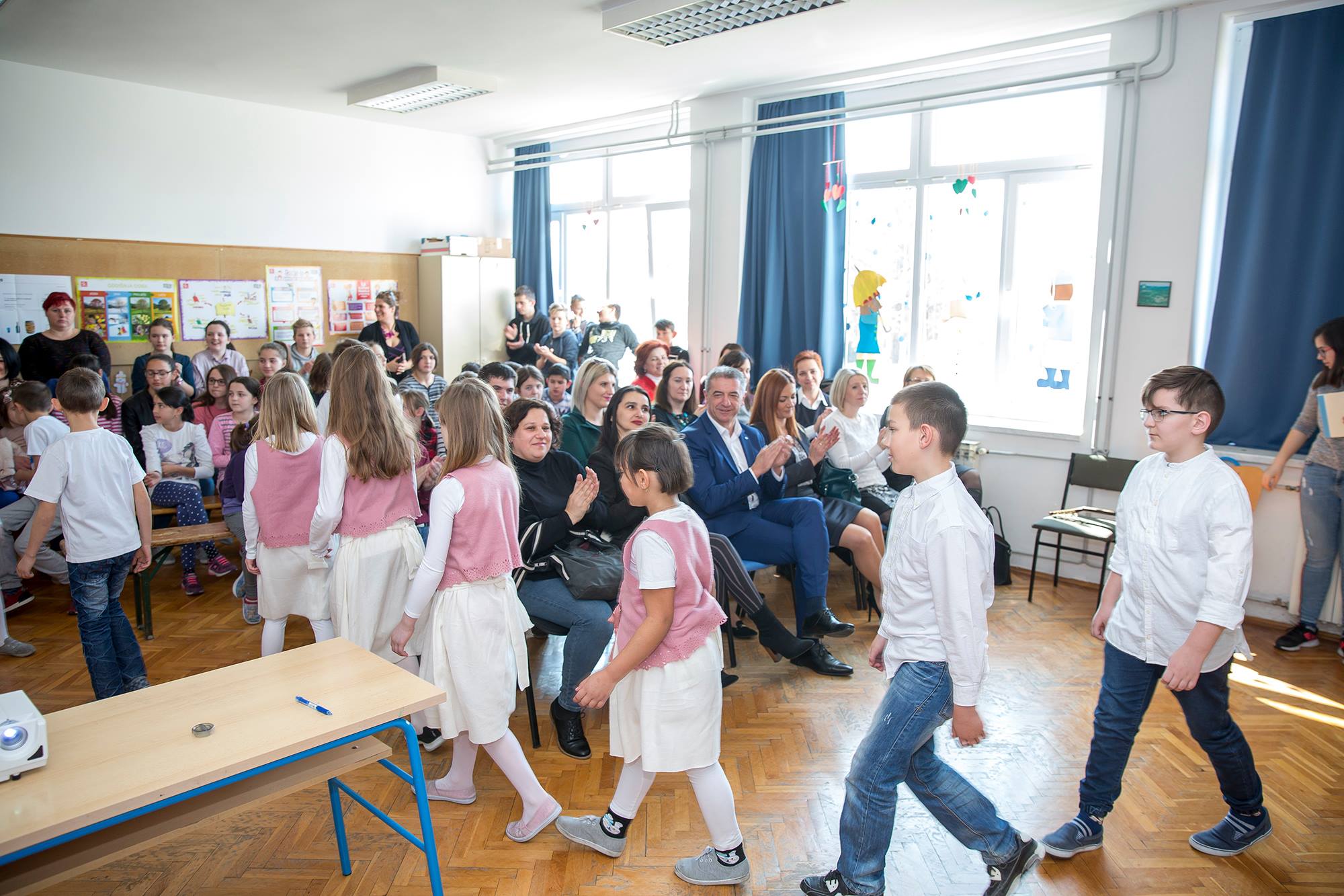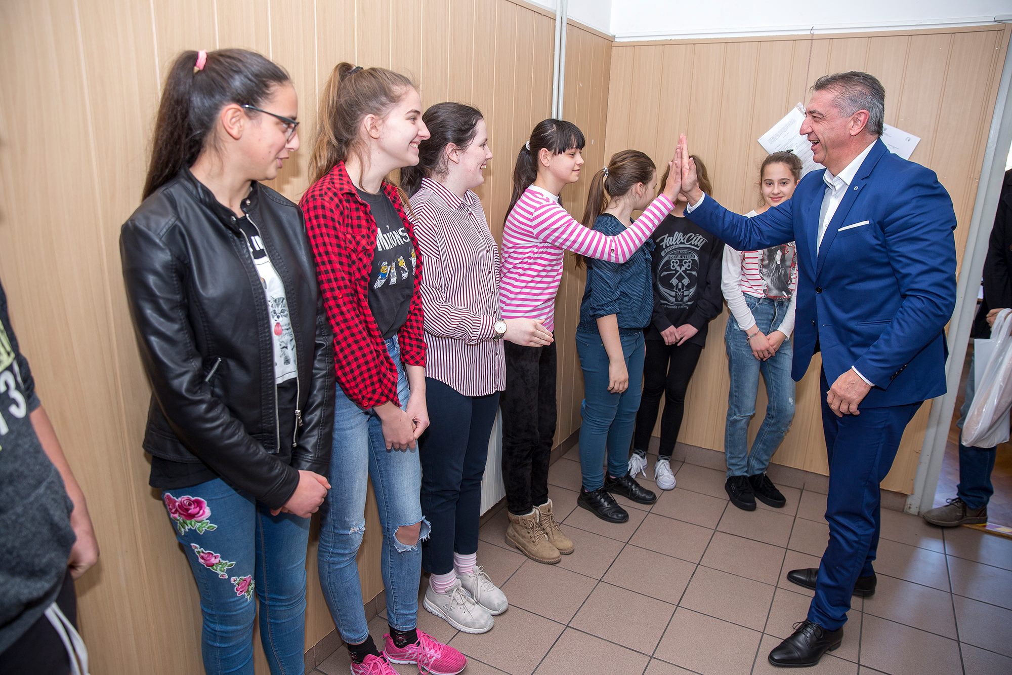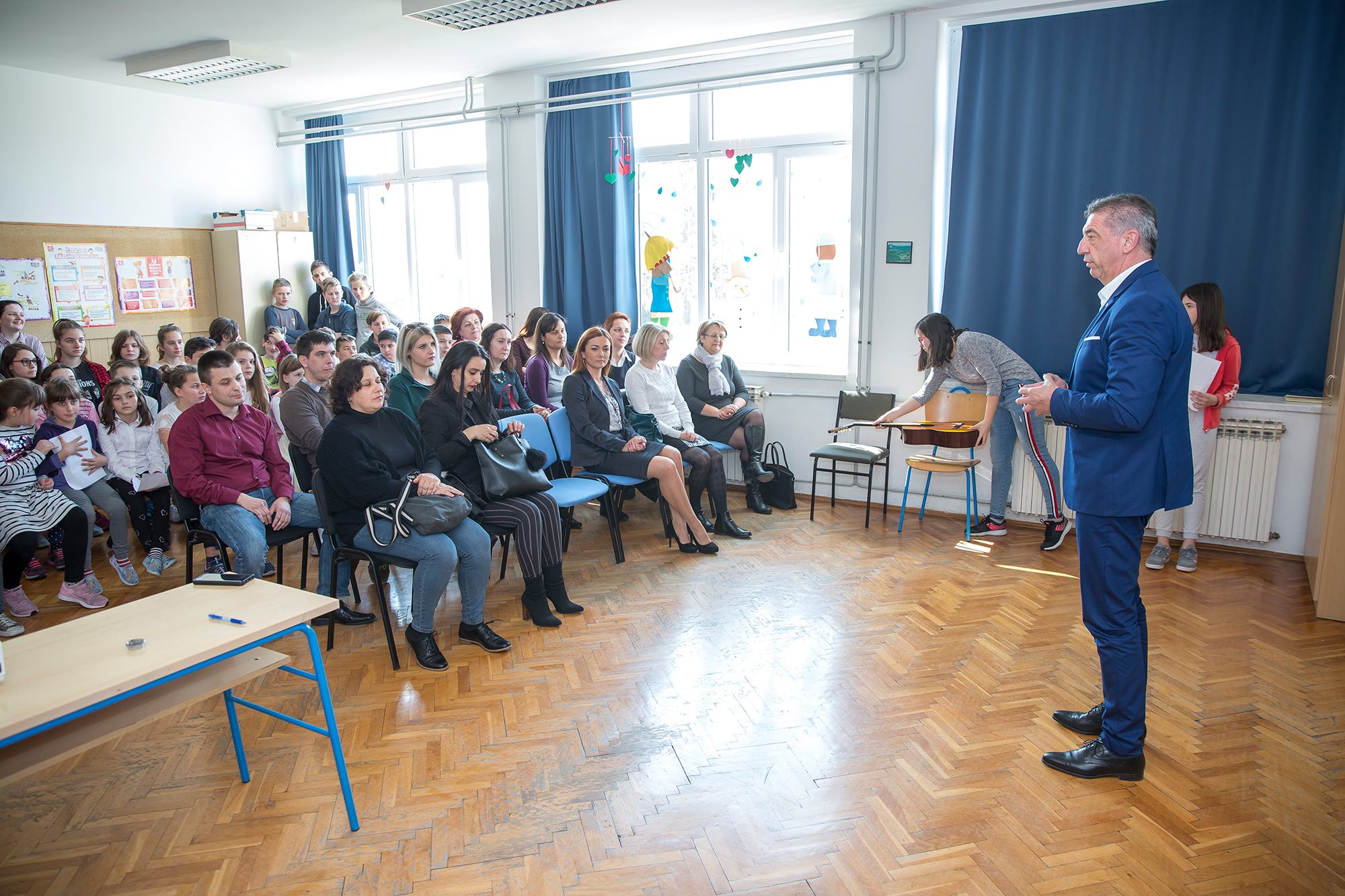 Nakon toga posebnu dobrodošlicu pripremili su mu učenici škole koji su kroz pjesmu i ples pokazali dio svojih aktivnosti. Sam župan je s njima rado zapjevao.