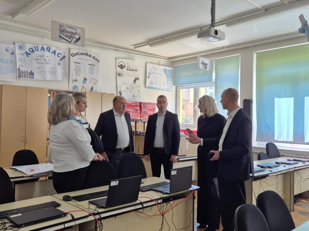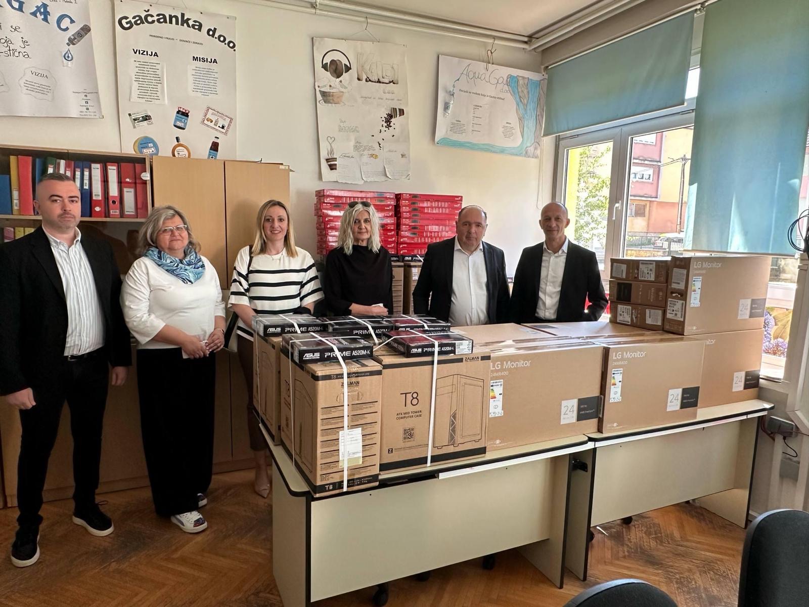 Nazočni su se prigodom obilaska škole susreli s učenicima i učiteljima, nakon čega su se zaputili u Srednju školu Otočac gdje ih je dočekao ravnatelj škole Ivan Vidmar kojom prigodom je izvršena primopredaja 20 laptopa s kompletnom opremom za rad na nastavi ukupne vrijednosti preko sedam tisuća eura financiranih od strane Ličko-senjske županije.