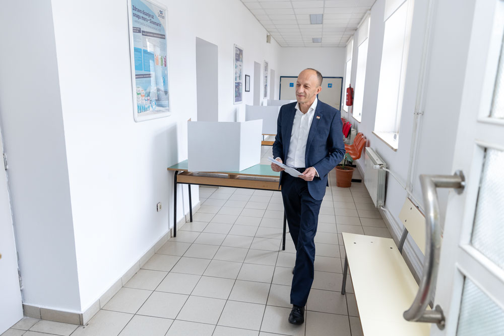 Svoju građansku dužnost točno u 11 sati u pratnji supruge obavio je na biračkom mjestu Dom zdravlja Gospić i ličko-senjski župan Ernest Petry.