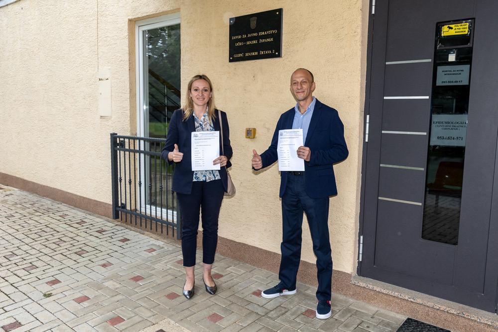 Odazivajući se našem pozivu da postave standard u transparentnosti političkog djelovanja, župan Petry i zamjenica Orešković Brkljačić odmah su se odazvali i u roku od 10-ak minuta pojavili ispred Zavoda za javno zdravstvo Ličko-senjske županije gdje je izvršeno njihovo testiranje pod budnim okom medija.