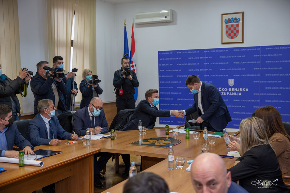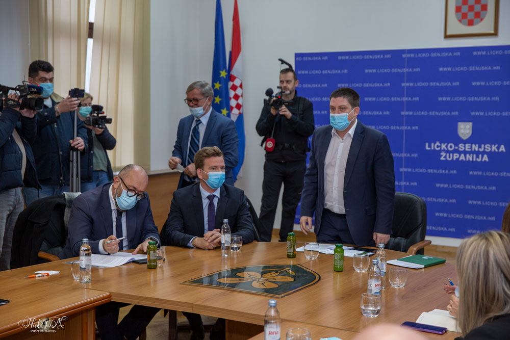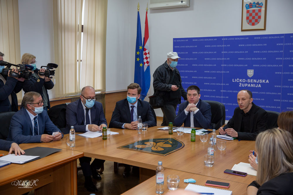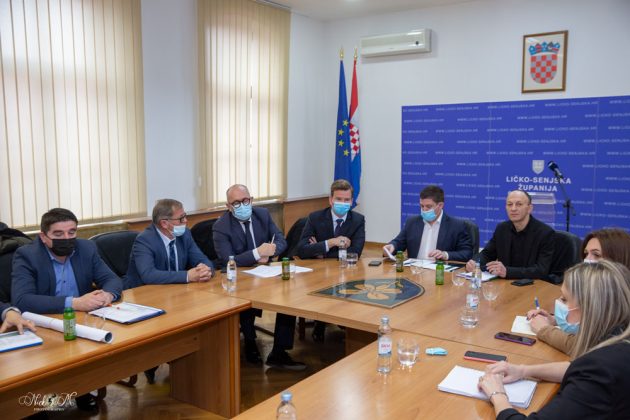Teme sastanka bile su kapitalne investicije resornog ministarstva na području Ličko-senjske županije (ulaganje u luke na području Novalje, Stinice i Karlobaga), realizacija