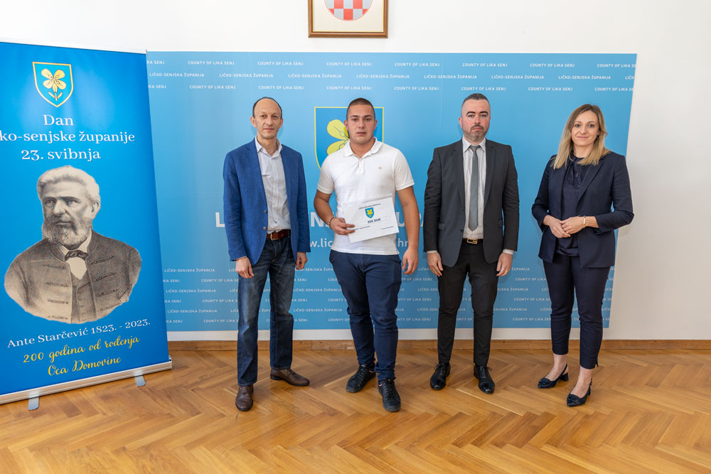 –Uvijek smo na raspolaganju ljudima koji se žele profilirati i uspjeti u svojem zanimanju. Tu mi kao Županija uvijek možemo pomoći jer nam je svima u interesu školovati izvrsne kadrove. Mi kao Županija pratimo uspjehe naših srednjoškolaca i studenata dodjelama stipandija. Zato mi je drago što će se Alan upisati na Šumarski fakultet i iskreno bih volio da bude naš stipendist. Upravo je ovo jedan od načina da mlade ljude jednoga dana vratimo svojim kućama, a upravo će mladi ljudi biti okosnica razvoja Ličko-senjske županije, rekao je župan Petry i dodjelio Alanu Končaru poklon-bon u vrijednosti od 200 eura.