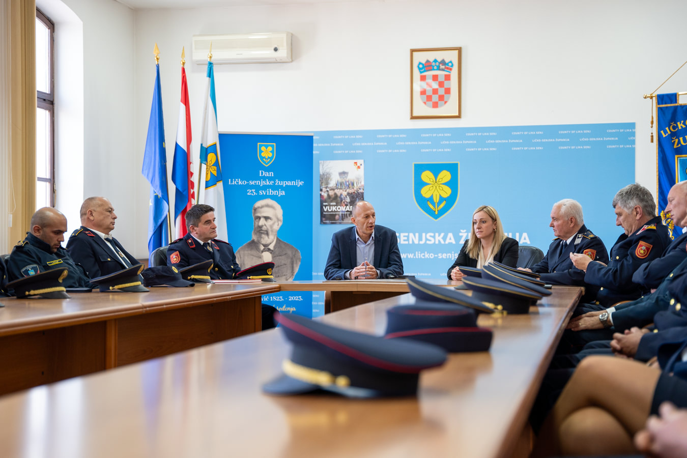 Predstavnike vatrogastva predvođene Milanom Jurkovićem, predsjednikom Vatrogasne zajednice Ličko-senjske županije i županijskim vatrogasnim zapovjednikom Zvonimirom Lončarićem, primili su župan Ernest Petry i zamjenica župana Jasna Orešković Brkljačić.