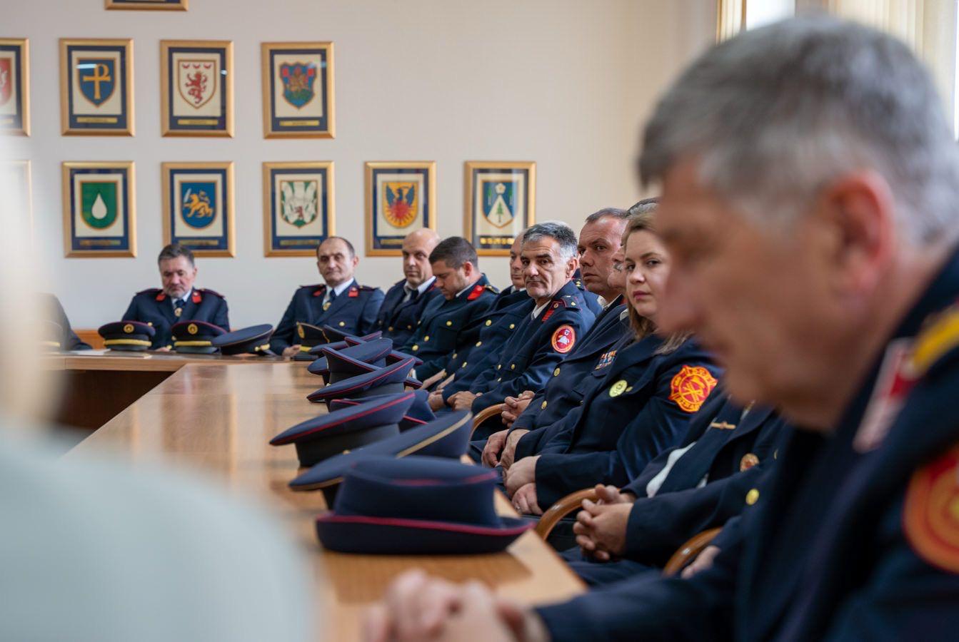 Predstavnike vatrogastva s područja Ličko-senjske županije, predvođene predsjednikom Vatrogasne zajednice Ličko-senjske županije Milanom Jurkovićem i županijskim vatrogasnim zapovjednikom Zvonimirom Lončarićem, primili su župan Ernest Petry i zamjenica župana Jasna Orešković Brkljačić.
