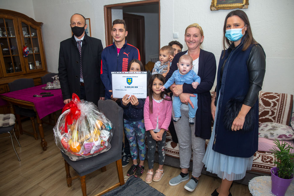 –Kad vidim sve ovo pomalo vam zavidim na ovoj obiteljskoj harmoniji i djeci, najvećem bogatstvu koje svaki čovjek može poželjeti. Vjerujem da je ovaj paket slatkiša došao u prave ruke, a poklon-bon je skromni dar u ime Ličko-senjske županije, izjavio je pri tome župan Petry. Uzevši u naručje najmlađeg Luku župan je guštao jer mu se klinac osmjehivao, bez plača i negodovanja.