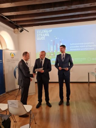 U prostorijama Centra za posjetitelje Medvedgrad u Zagrebu, danas je organizirano svečano uručivanje ugovora za sufinanciranje projekata provedbe mjera prilagodbe klimatskim promjenama, kojom prigodom su ministar gospodarstva i održivog razvoja Davor Filipović i direktor Fonda za zaštitu okoliša i energetsku učinkovitost Luka Balen uručili Ugovore o sufinanciranju projekata u vrijednosti 17 milijuna eura.
