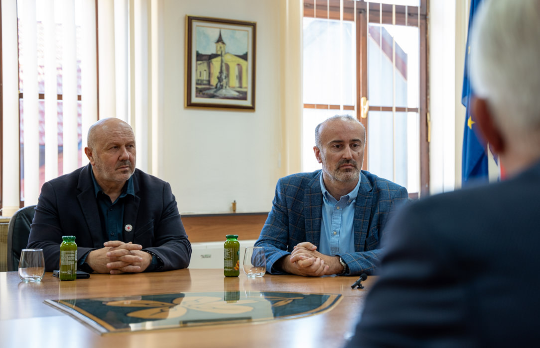 Župan Petry na početku sastanka zahvalio im se na dolasku te na svemu što su napravili za Gospić i Liku u ovih preko tri desetljeća suradnje, a posebno na humanitarnom radu i pomoći u najtežim danima Domovinskog rata. Također, izrazio je i veliko zadovoljstvo uspješnim nastavkom te suradnje do danas, uz posebnu zahvalu Vladi Brkljačiću, ravnatelju Crvenog križa Gospić, kao velikoj humanitarnoj figuri našeg područja.