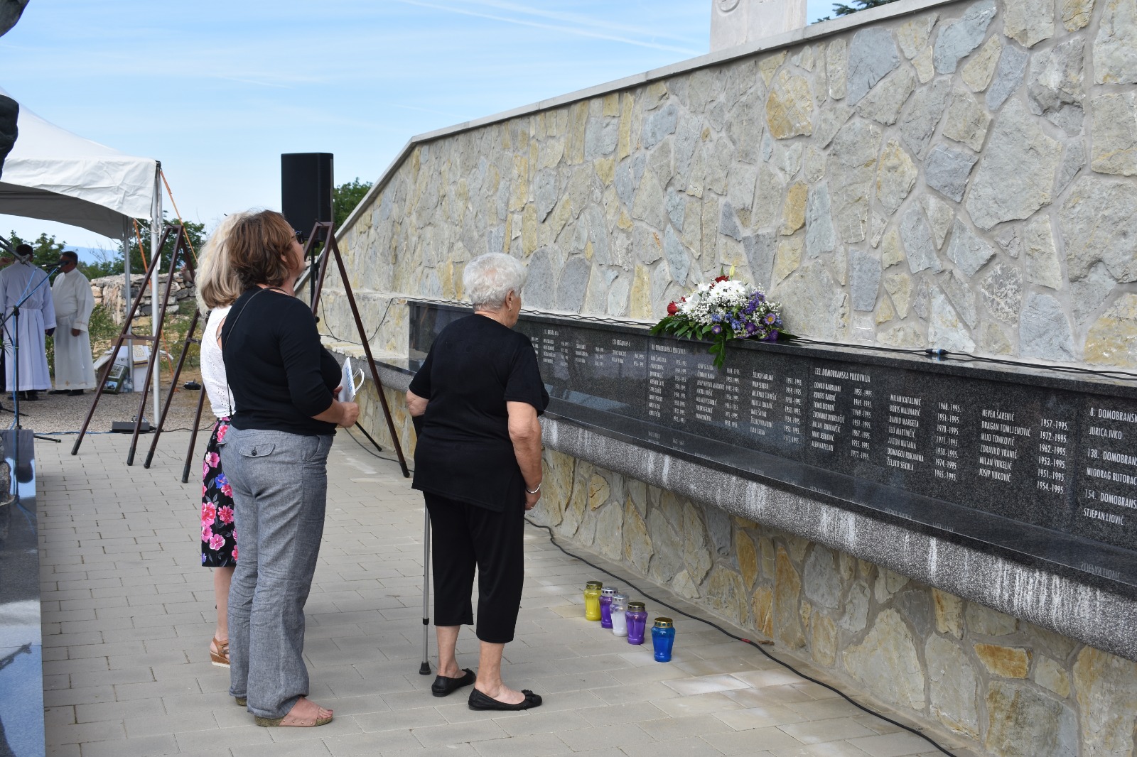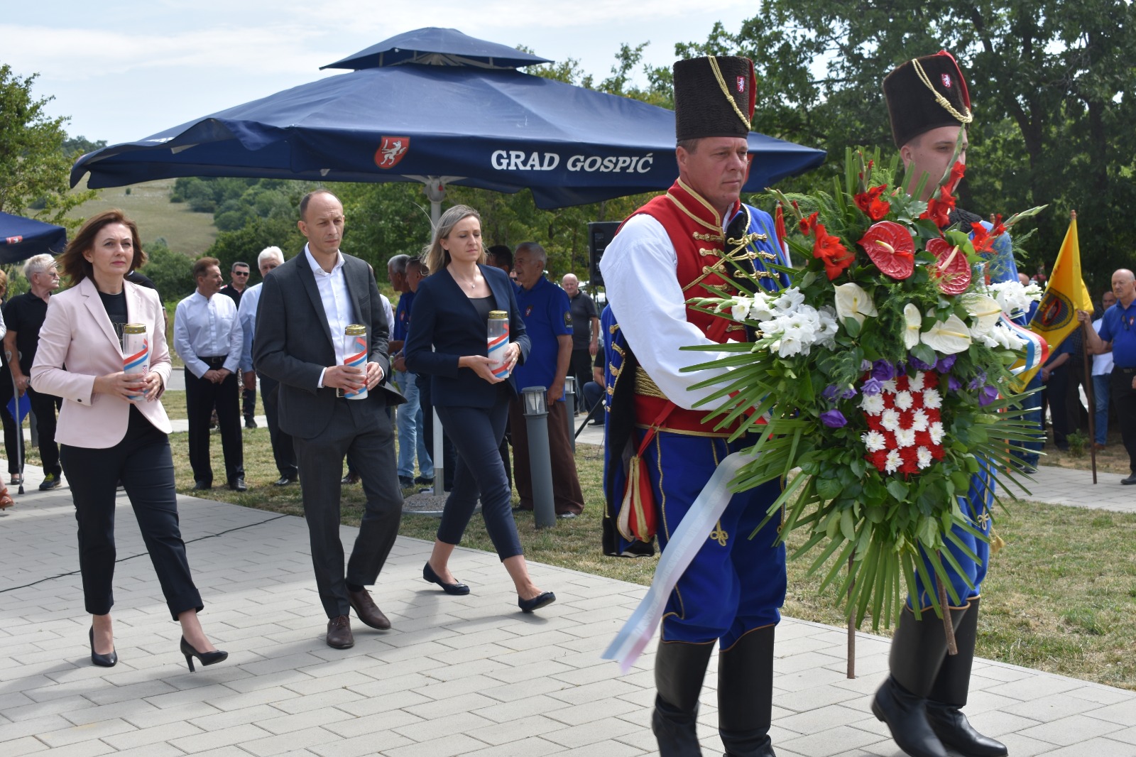 Kod spomen-obilježja podignutom u čast hrvatskih branitelja vijence su najprije položile obitelji poginulih i predstavnici braniteljskih udruga. U ime Ličko-senjske županije vijenac je položilo izaslanstvo u kojem su bili župan Ernest Petry, njegova zamjenica Jasna Orešković Brkljačić i saborska zastupnica Anita Pocrnić Radošević. Slijedila su izaslanstva Grada Gospića, Općine Karlobag koju je predvodio načelnik Boris Smojver, Grada Raba, Općine Brinje… Svijeće su zapalili predstavnici brojnih braniteljskih udruga na potezu od Istre, Kvarnera, otoka i Like.